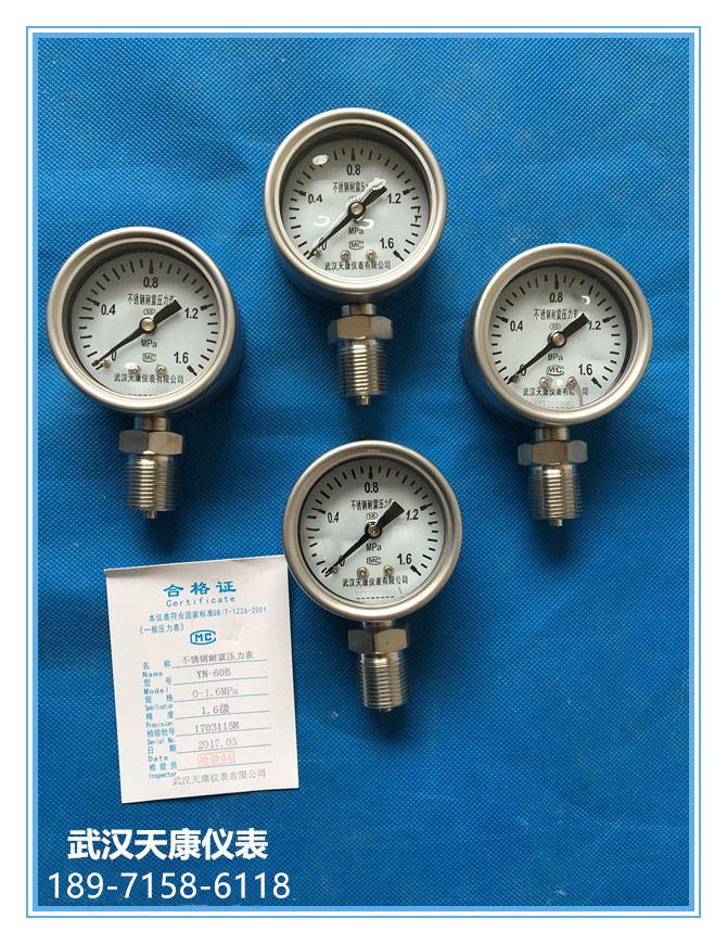 不銹鋼耐震壓力表即有耐震壓力表的耐震性能,又具有不銹鋼壓力表的耐腐蝕性能,不銹鋼耐震壓力表適用于工礦現(xiàn)場振動性較大,并且被測量的介質(zhì)具有腐蝕性的場合。 一、 主要技術(shù)指標(biāo):										| 						表盤直徑(mm)					 | 						標(biāo)度范圍(MPa)					 | 						精度度等級(%)					 |