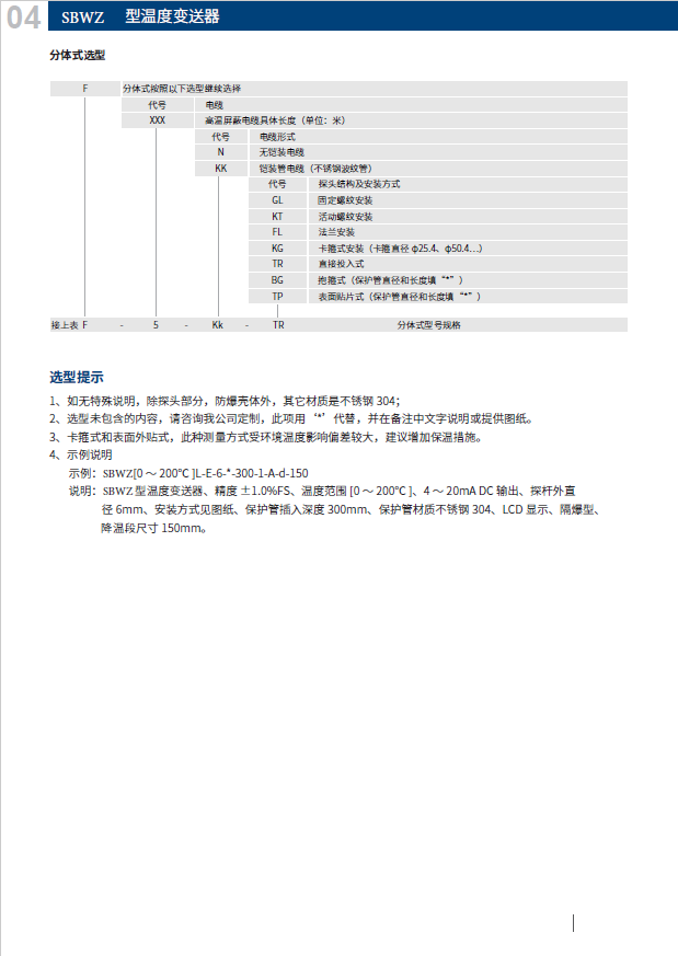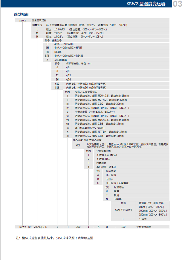 類 別 :SBW 模塊式溫變 SBW 一體化熱電阻 	準(zhǔn) 確 度:0.2%F.S 0.5%F.S